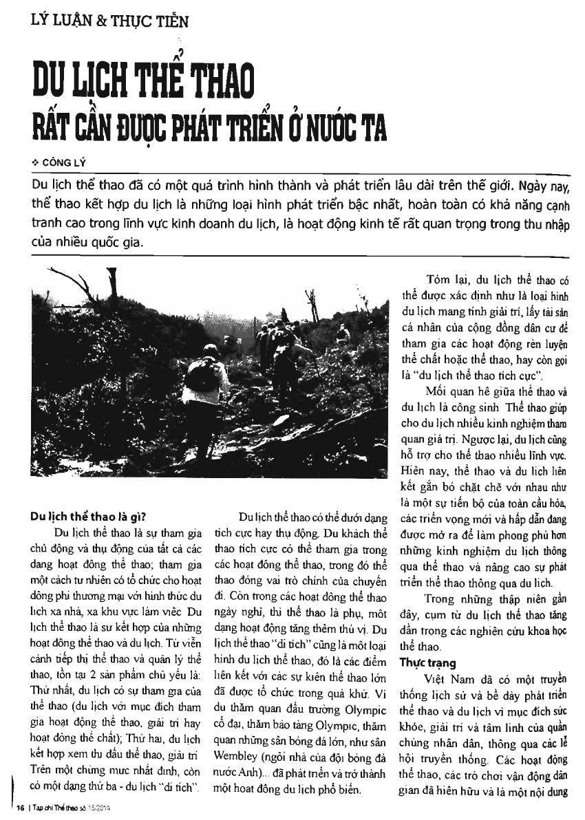 DU lịch thể thao rất cần được phát triển ở nước ta