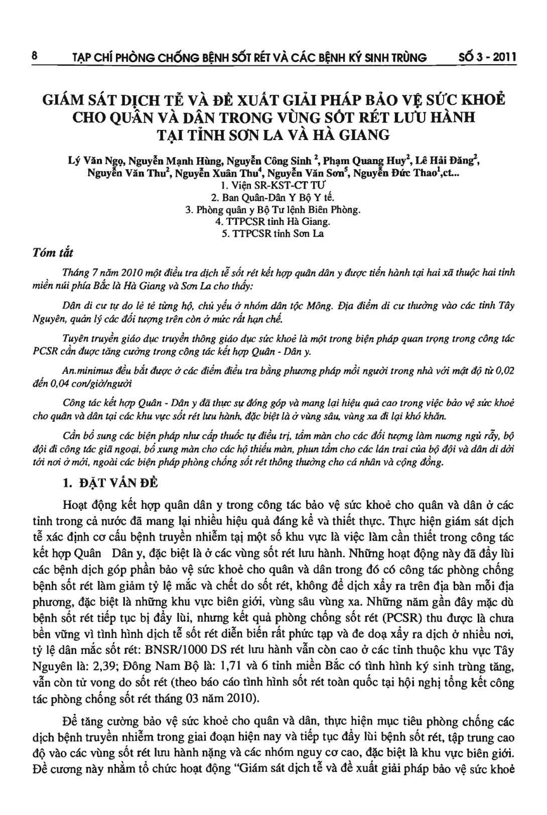 Giám sát dịch tễ và đề xuất giải pháp bảo vệ sức khỏe cho quân và dân trong vùng sốt rét lưu hành tại tỉnh Sơn La và Hà Giang