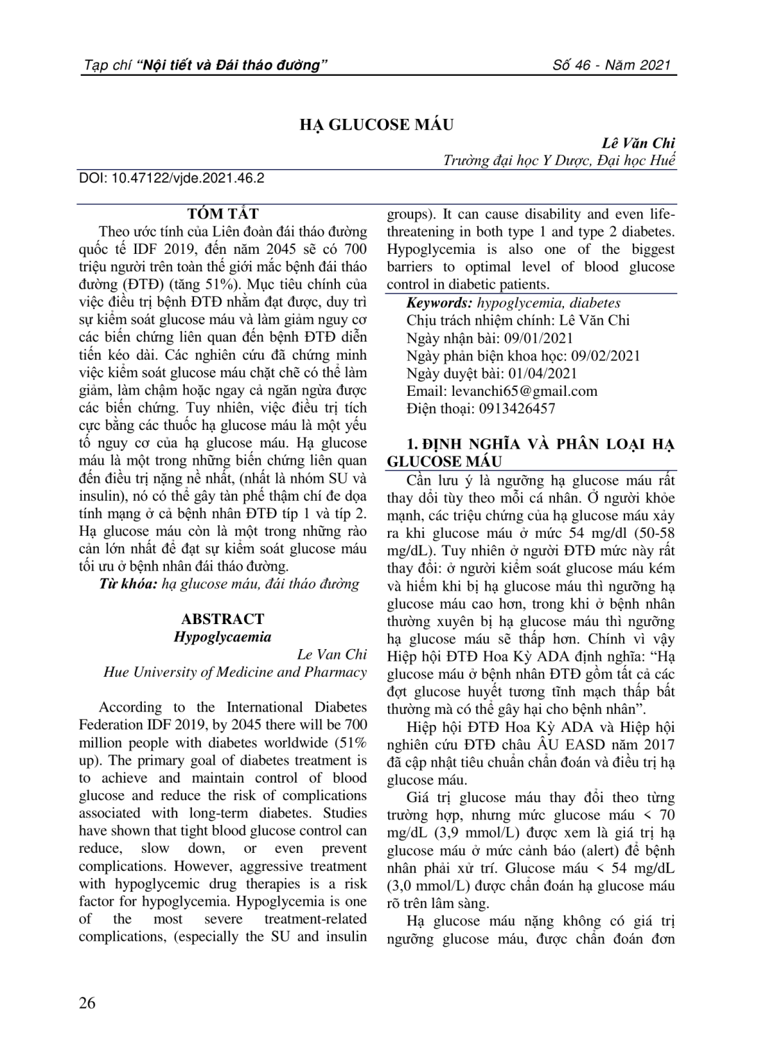 Theo ước tính của Liên đoàn đái tháo đường quốc tế IDF 2019, đến năm 2045 sẽ có 700 triệu người trên toàn thế giới mắc bệnh đái tháo đường (ĐTĐ) (tăng 51%). Mục tiêu chính của việc điều trị bệnh ĐTĐ nhằm đạt được, duy trì sự kiểm soát glucose máu và làm giảm nguy cơ các biến chứng liên quan đến bệnh ĐTĐ diễn tiến kéo dài. Các nghiên cứu đã chứng minh việc kiểm soát glucose máu chặt chẽ có thể làm giảm, làm chậm hoặc ngay cả ngăn ngừa được các biến chứng. Tuy nhiên, việc điều trị tích cực bằng các thuốc hạ glucose máu là một yếu tố nguy cơ của hạ glucose máu. Hạ glucose máu là một trong những biến chứng liên quan đến điều trị nặng nề nhất, (nhất là nhóm SU và insulin), nó có thể gây tàn phế thậm chí đe dọa tính mạng ở cả bệnh nhân ĐTĐ típ 1 và típ 2. Hạ glucose máu còn là một trong những rào cản lớn nhất để đạt sự kiểm soát glucose máu tối ưu ở bệnh nhân đái tháo đường