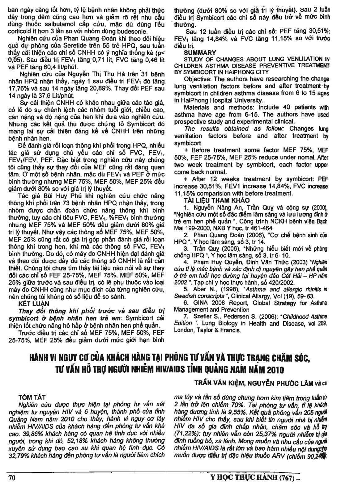 Hành vi nguy cơ của khách hàng tại phòng tư vấn và thực trạng chăm sóc, tư vấn hỗ trợ người nhiễm HIV/AIDS tỉnh Quảng Nam năm 2010