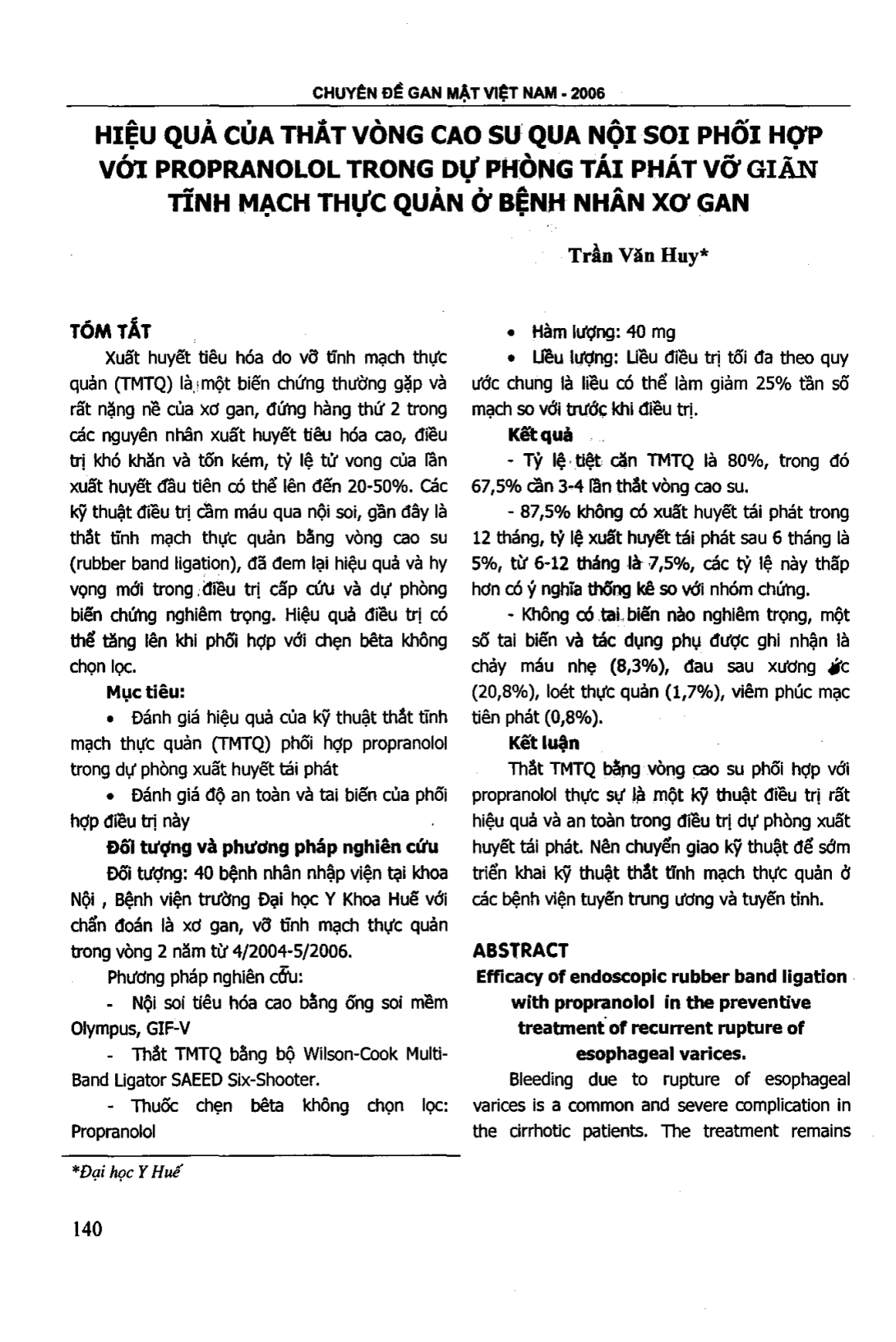 Hiệu quả của thắt vòng cao su qua nội soi phối hợp với propranolol trong dự phòng tái phát vỡ giãn tĩnh mạch thực quản ở bệnh nhân xơ gan