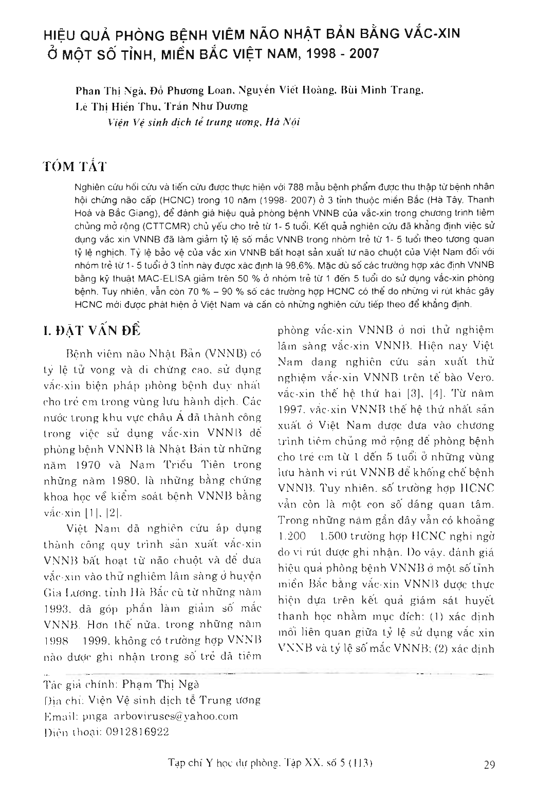 Hiệu quả phòng bệnh viêm não Nhật Bản bằng vắc xin ở một số tỉnh miền Bắc Việt Nam, 1998-2007
