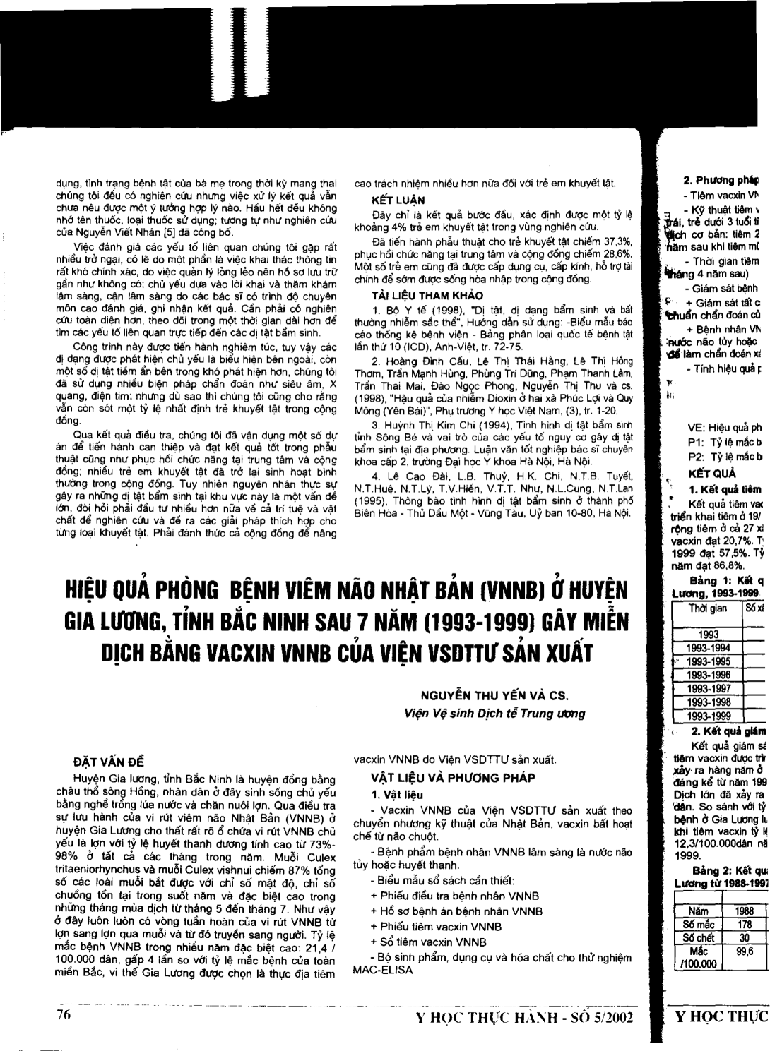 Hiệu quả phòng bệnh viêm não Nhật Bản (VNNB) ở huyện Gia Lương, tỉnh Bắc Ninh sau 7 năm (1993-1999) gây miễn dịch bằng vacxin VNNB của Viện VSDTTƯ sản xuất