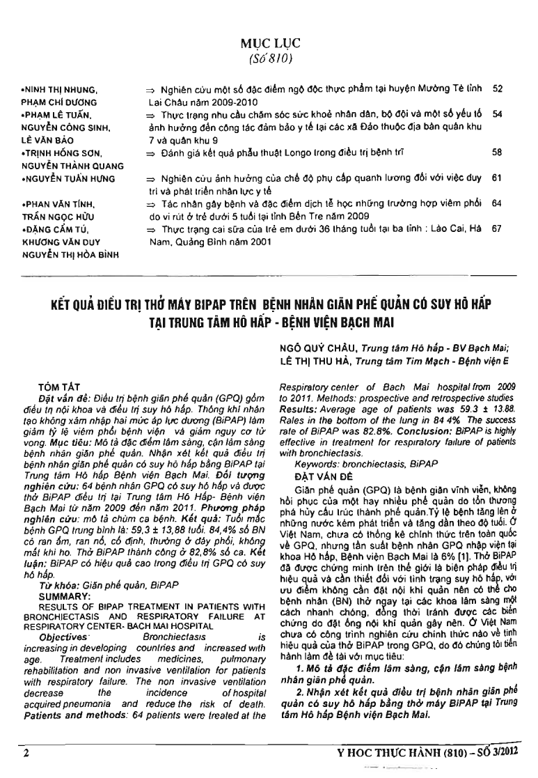 Kết quả điều trị thở BiPAP trên bệnh nhân giãn phế quản có suy hô hấp tại trung tâm hô hấp - bệnh viện Bạch Mai
