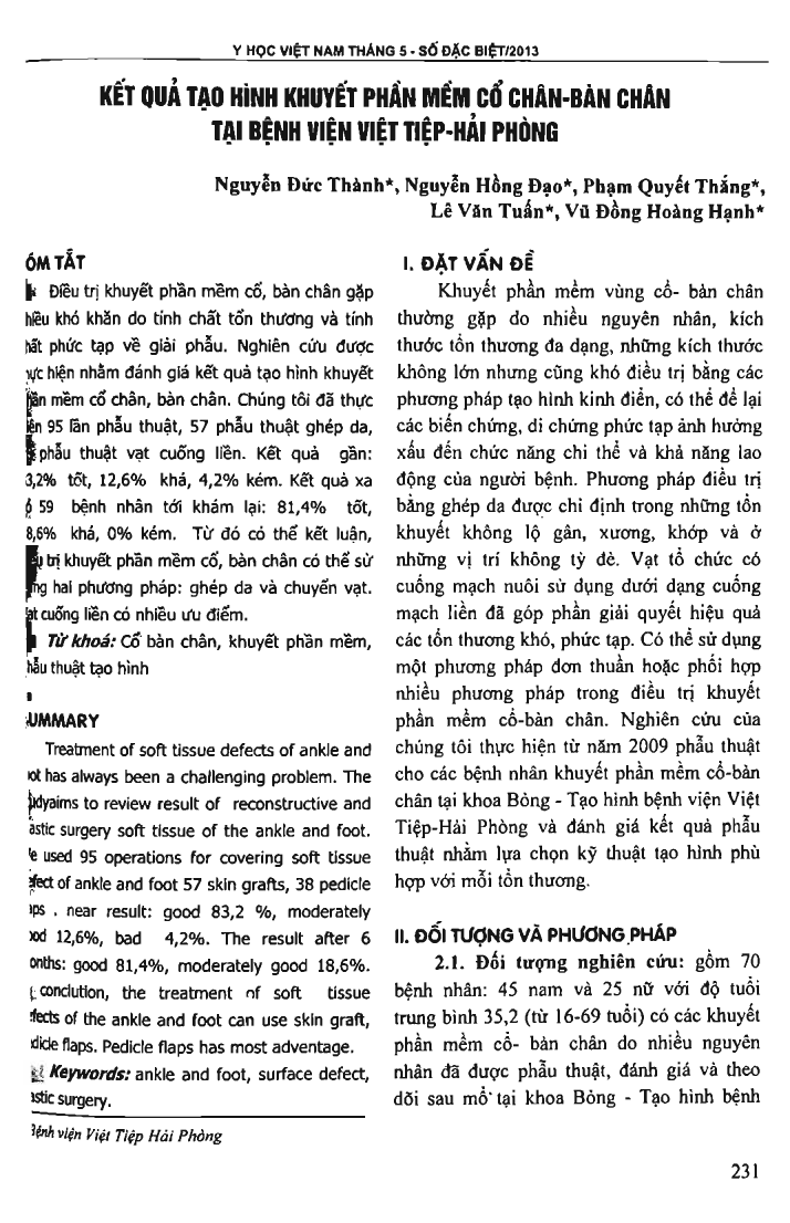 Kết quả tạo hình khuyết phần mềm cổ chân - bàn chân tại Bệnh viện Việt Tiệp, Hải Phòng