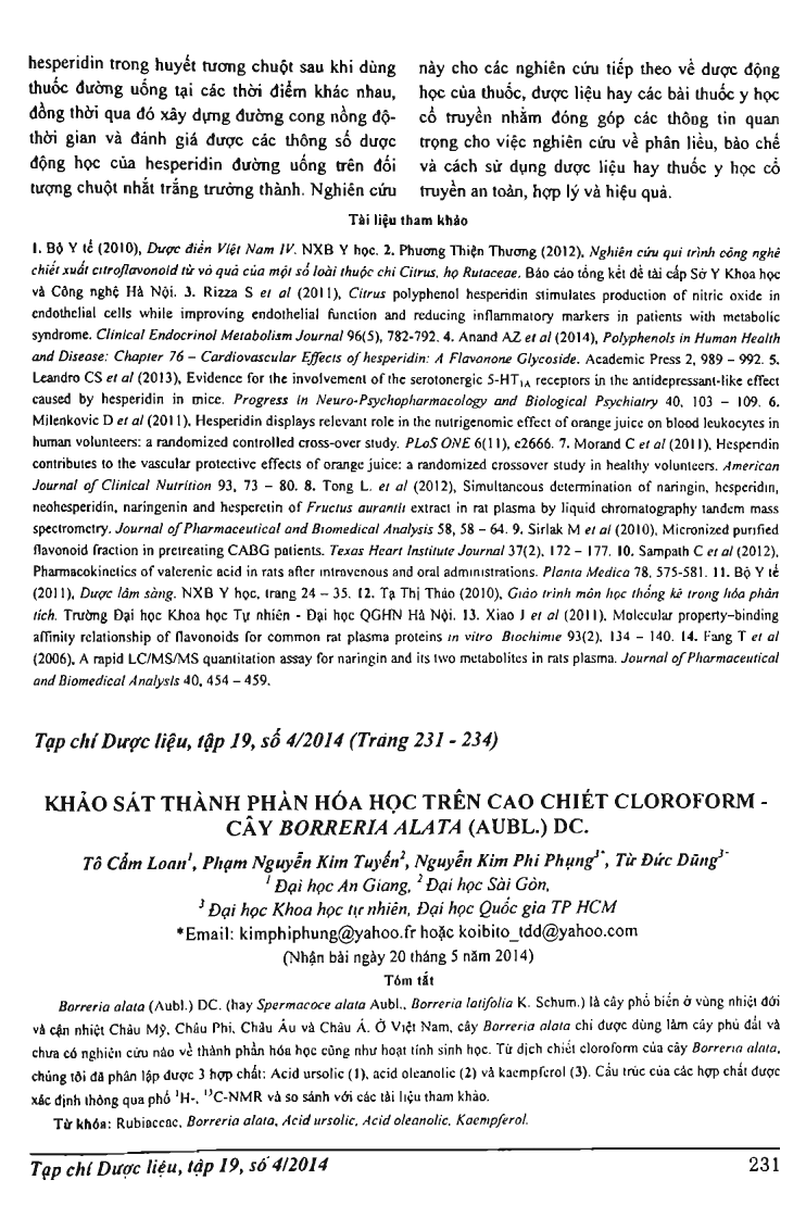 Khảo sát thành phần hóa học trên cao chiết Cloroform - Cây Borreria Alata (Aubl.) DC.