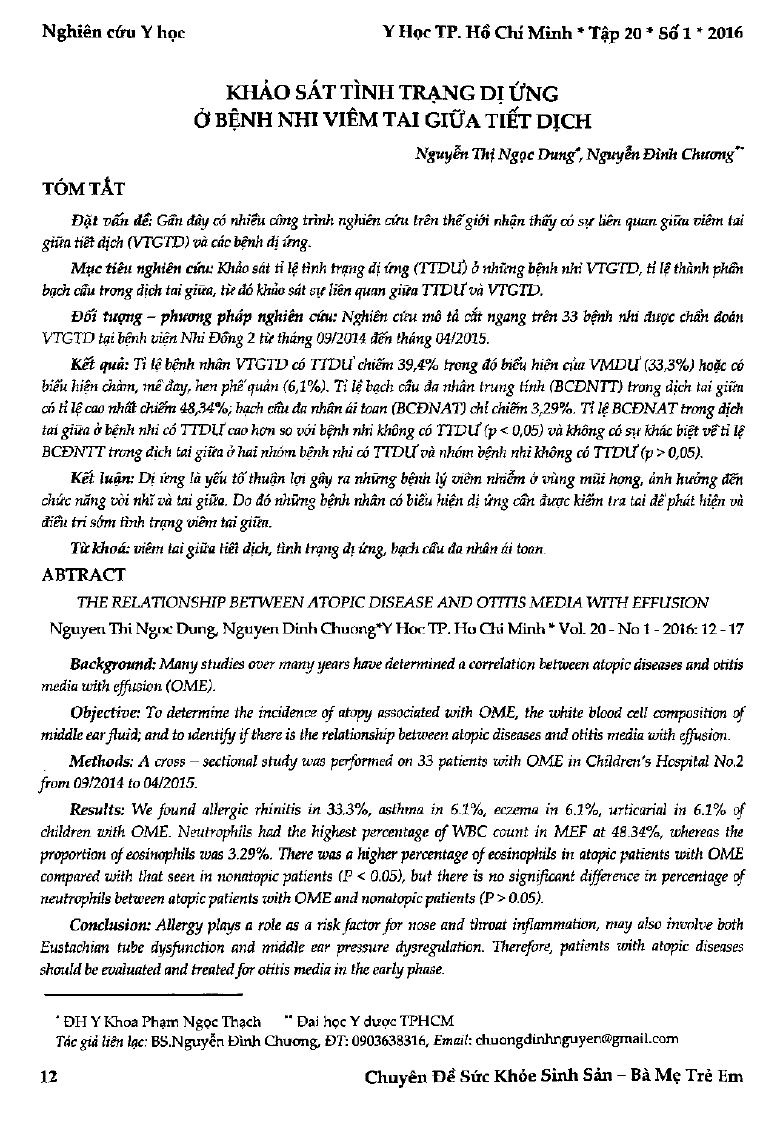 Khảo sát tình trạng dị ứng ở bệnh nhi viêm tai giữa tiết dịch