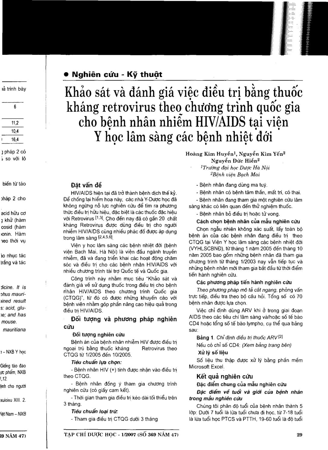 Khảo sát và đánh giá việc điều trị bằng thuốc kháng retrovirus theo chương trình quốc gia cho bệnh nhân nhiễm HIV/AIDS tại viện Y học lâm sàng các bệnh nhiệt đới