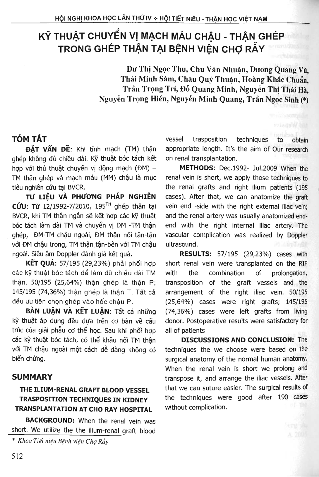 Kỹ thuật chuyển vị mạch máu chậu - thận ghép trong ghép thận tại bệnh viện Chợ Rẫy