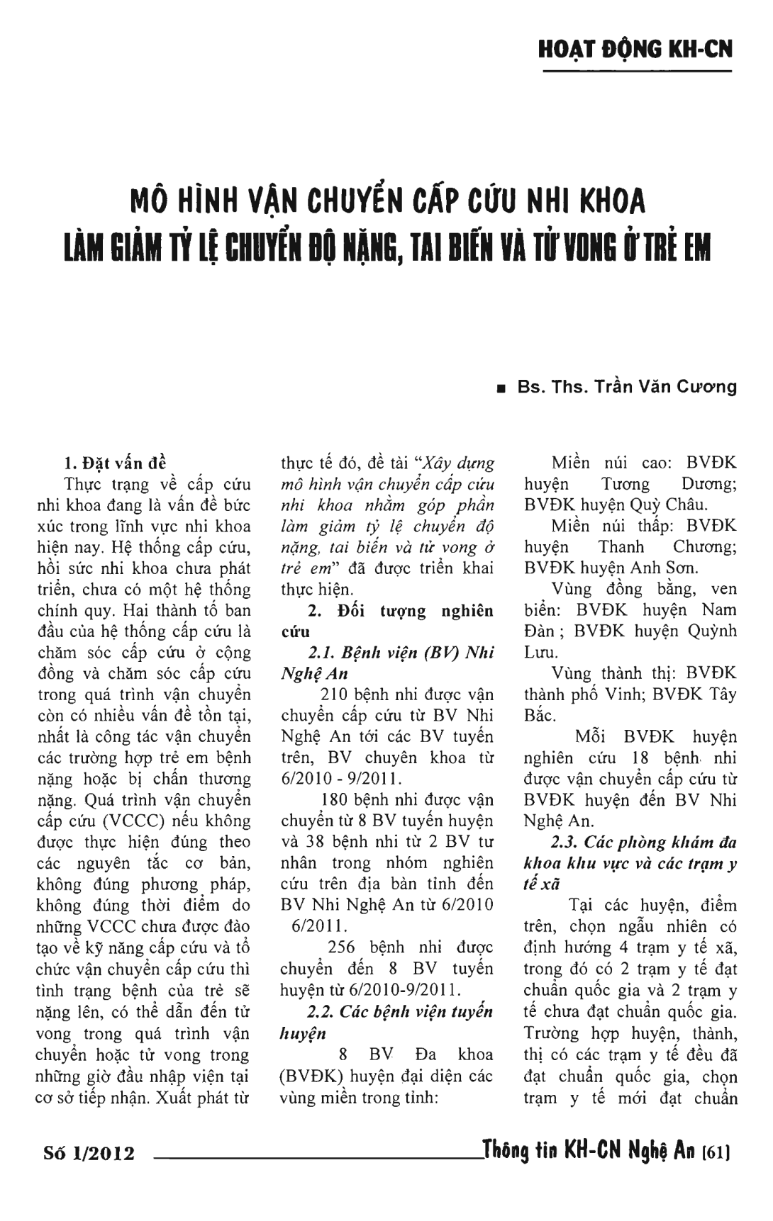 Mô hình vận chuyển cấp cứu nhi khoa làm giảm tỷ lệ chuyển độ nặng, tai biến và tử vong ở trẻ em