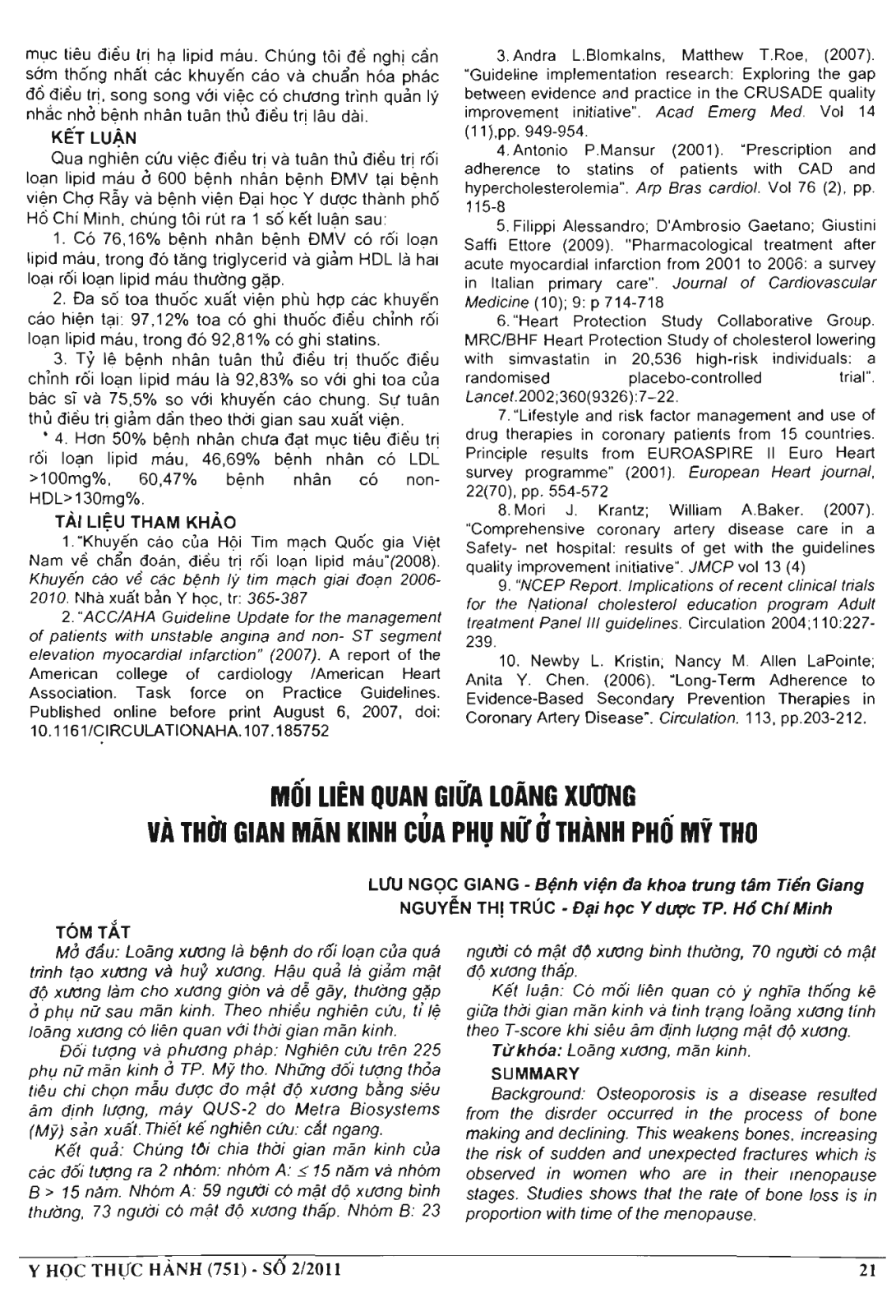 Mối liên quan giữa loãng xương và thời gian mãn kinh của phụ nữ ở thành phố Mỹ Tho