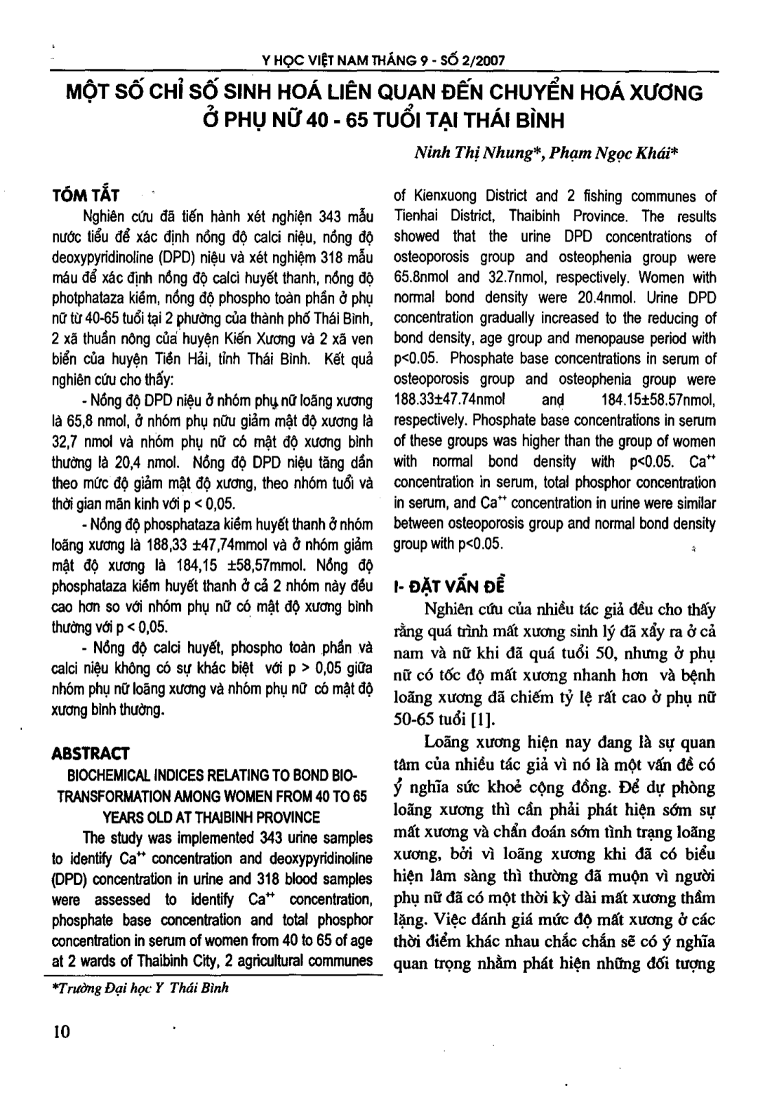 Một số chỉ số sinh hoá liên quan đến chuyển hoá xương ở phụ nữ 40-65 tuổi tại Thái Bình