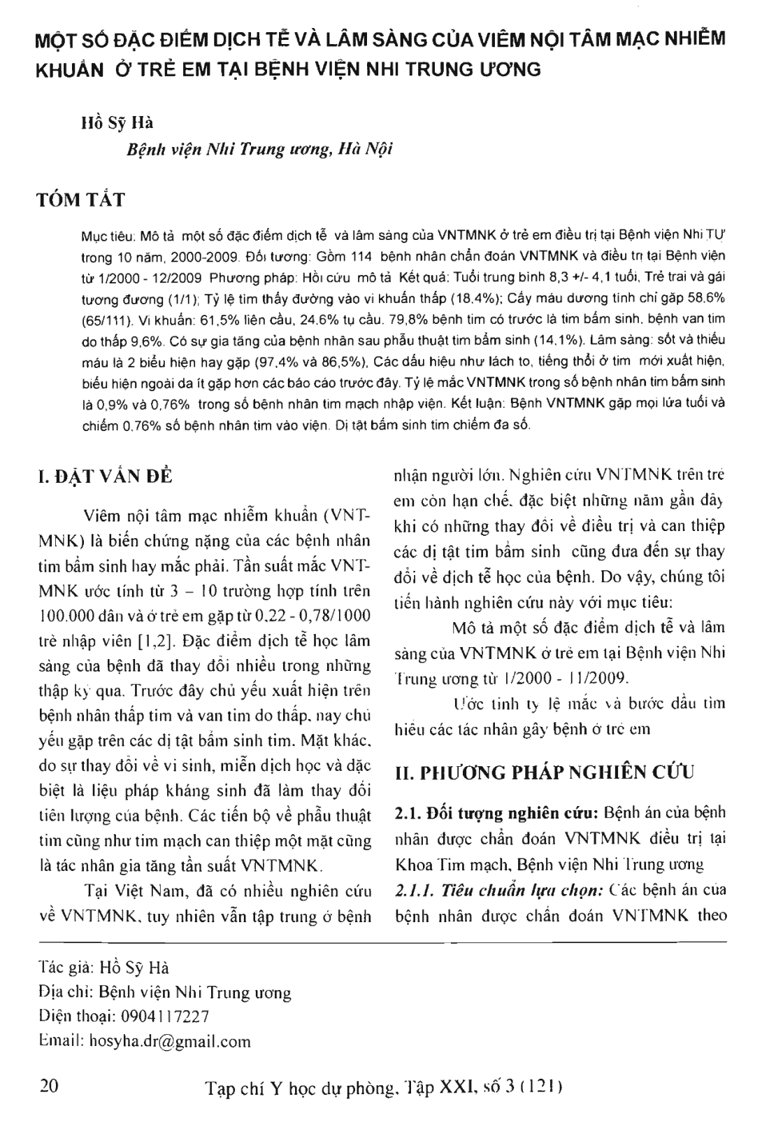 Một số đặc điểm dịch tễ và lâm sàng của viêm nội tâm mạc nhiễm khuẩn ở trẻ em tại bệnh viện Nhi Trung ương