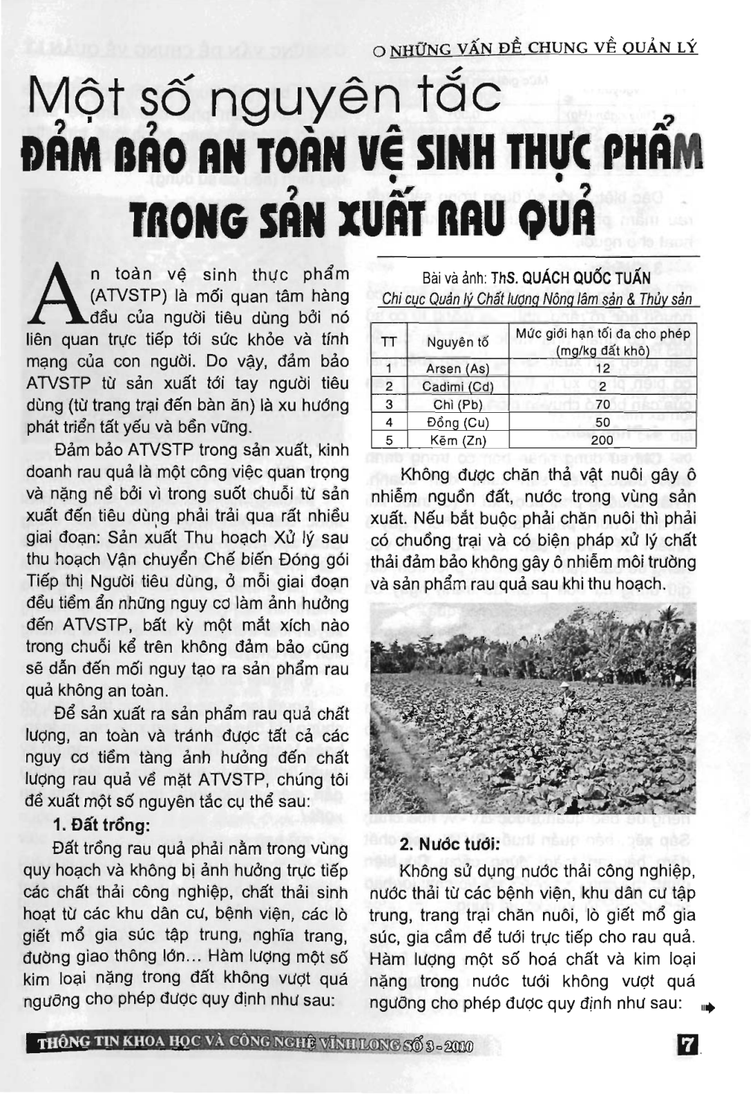 Một số nguyên tắc đảm bảo an toàn vệ sinh thực phẩm trong sản xuất rau quả