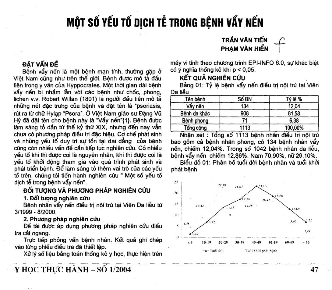 Một số yếu tố dịch tễ trong bệnh vảy nến