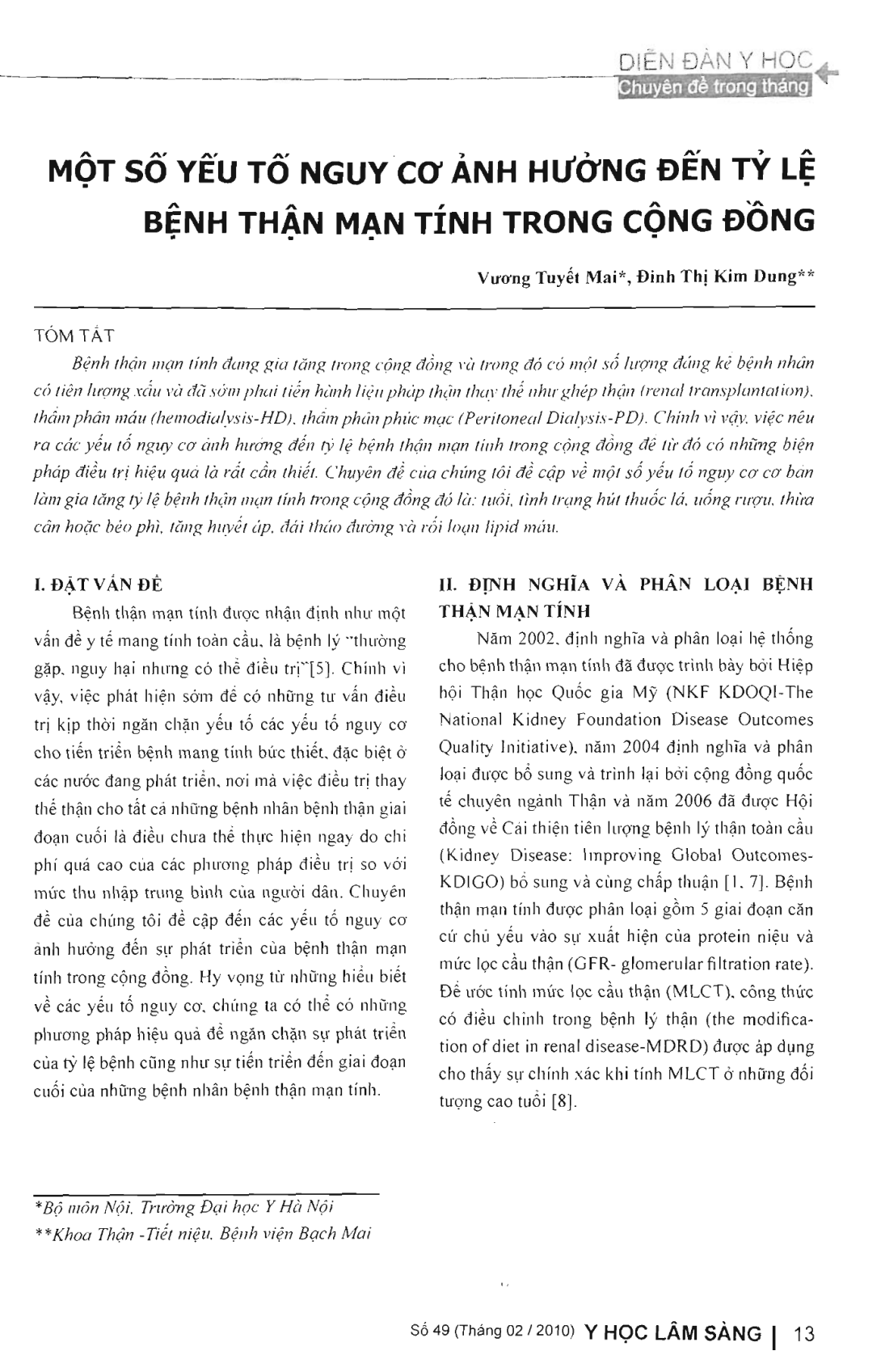 Một số yếu tố nguy cơ ảnh hưởng đến tỷ lệ bệnh thận mạn tính trong cộng đồng