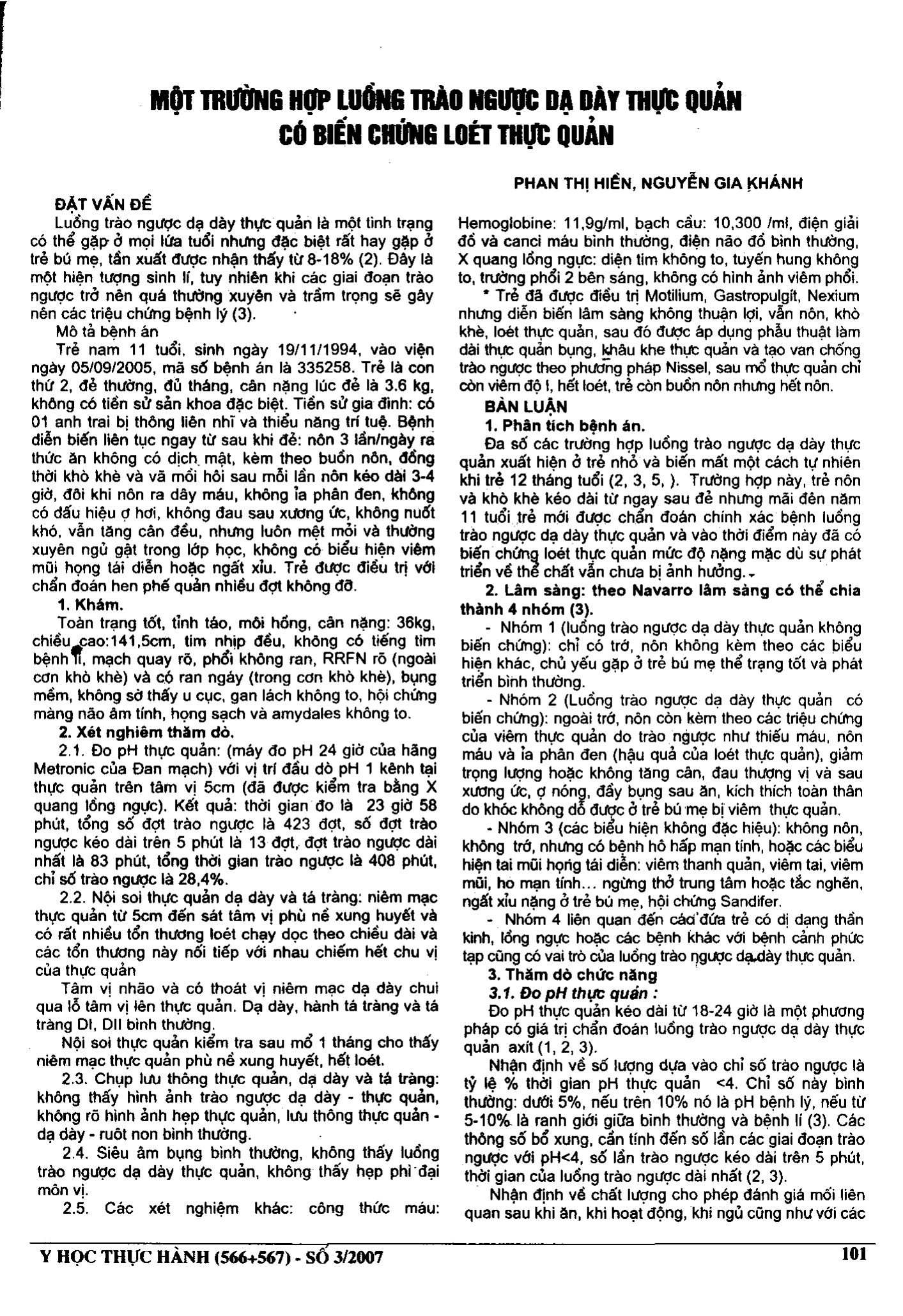 Một trường hợp luống trào ngược dạ dày thực quản có biến chứng loét thực quản