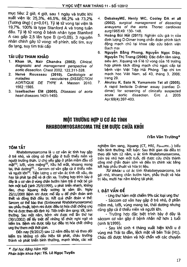 Một trường hợp u cơ ác tính Rhabdomyosarcoma trẻ em được chữa khỏi