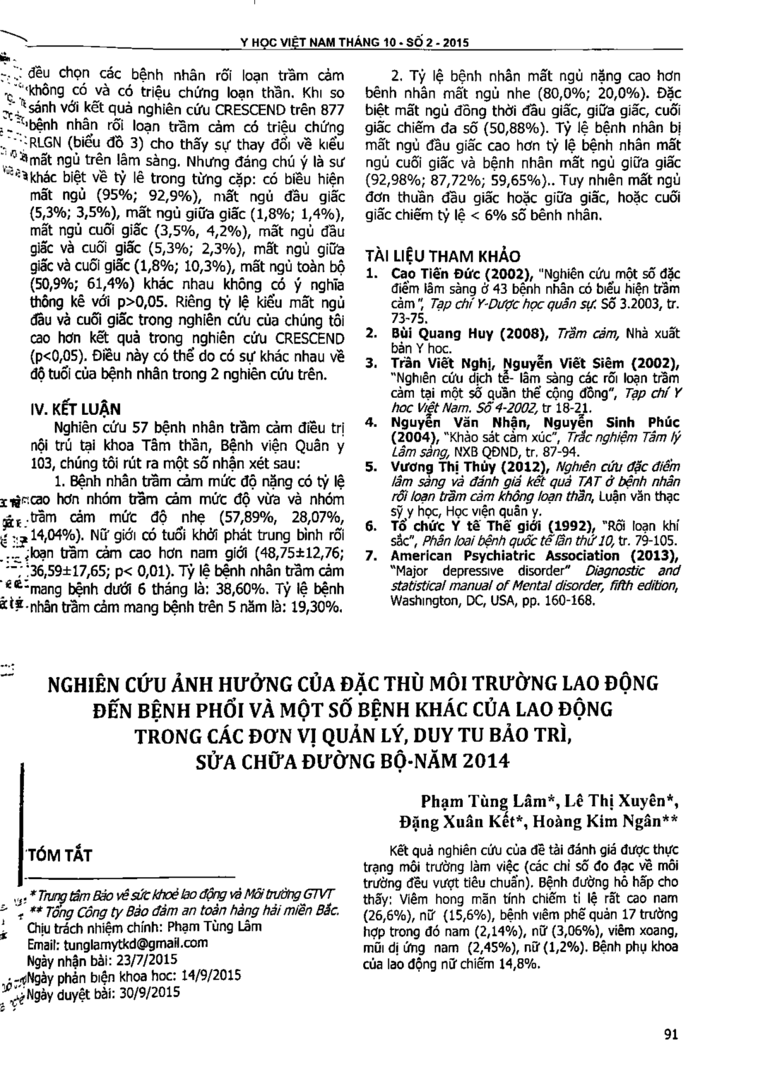 Nghiên cứu ảnh hưởng của đặc thù môi trường lao động đến bệnh phổi và một số bệnh khác cua lao động trong các đơn vị quản lý, duy tu bảo trì, sửa chữa đường bộ, năm 2014