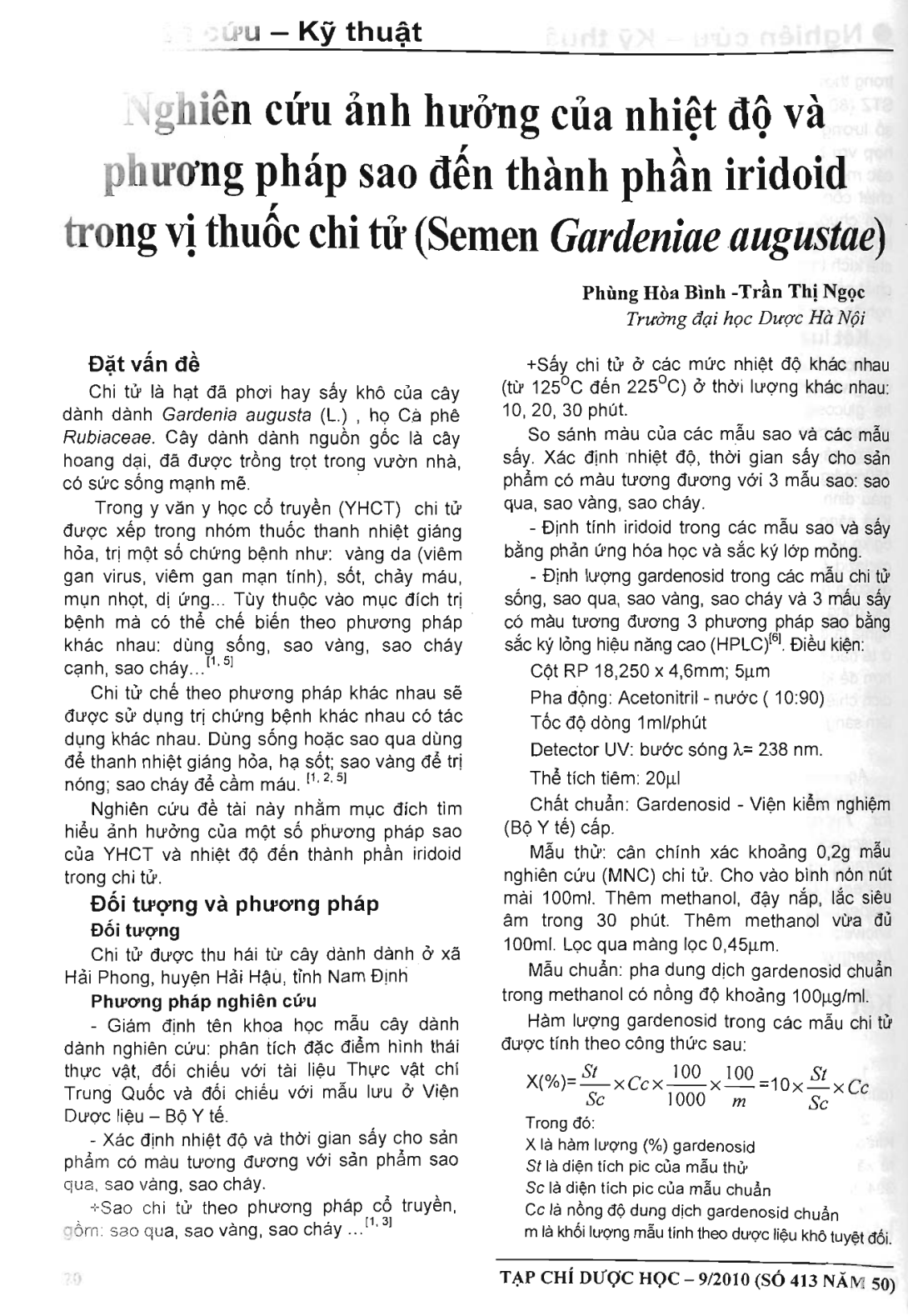 Nghiên cứu ảnh hưởng của nhiệt độ và phương pháp sao đến thành phần iridoid trong vị thuốc chi tử (Semen Gardenae augustae)