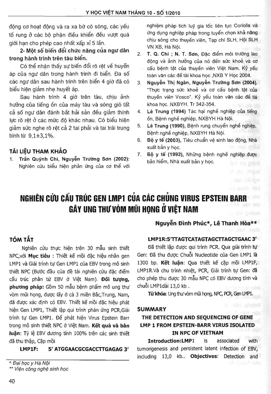 Nghiên cứu cấu trúc gen LMP1 của các chủng Virus Epstein Barr gây ung thư vòm mũi họng ở Việt Nam