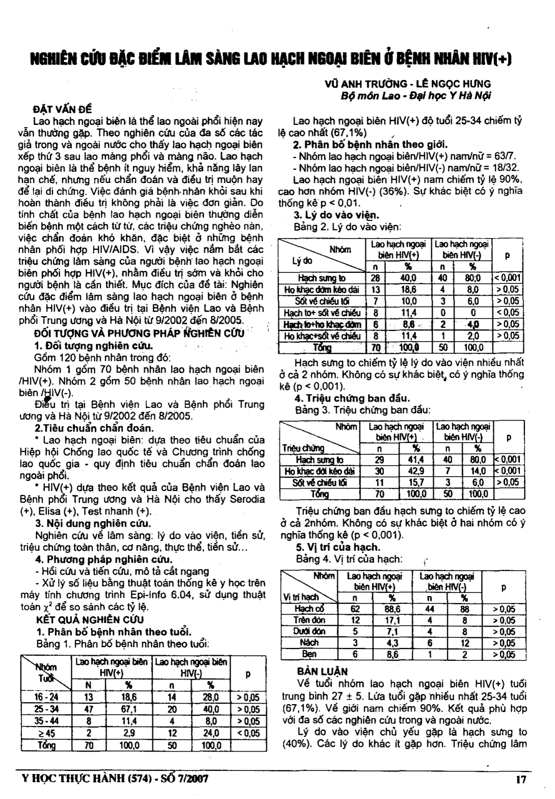 Nghiên cứu đặc điểm lâm sàng lao hạch ngoại biên ở bệnh nhân HIV(+)
