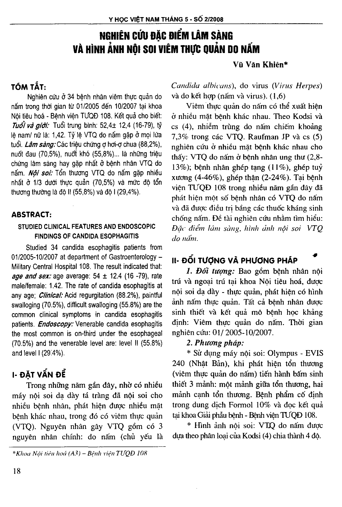 Nghiên cứu đặc điểm lâm sàng và hình ảnh nội soi viêm thực quản do nấm