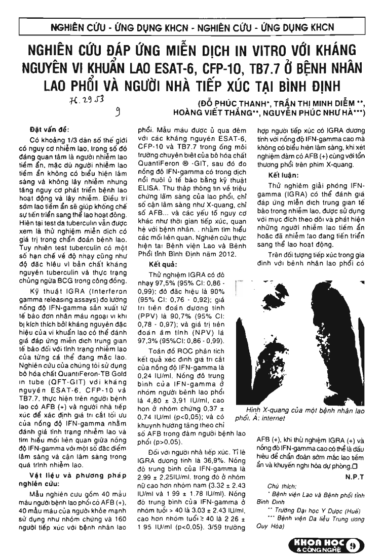 Nghiên cứu đáp ứng miễn dịch in VITRO với kháng nguyên vi khuẩn Lao ESAT-6, CFP-10, TB7.7 ở bệnh nhân lao phổi và người nhà tiếp xúc