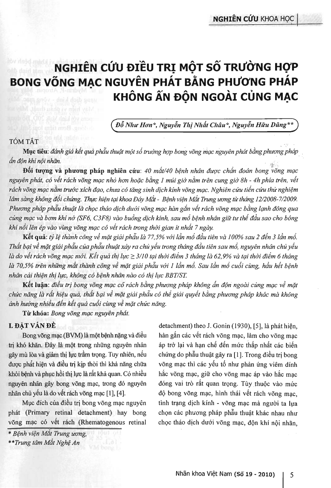 Nghiên cứu điều trị một số trường hợp bong võng mạc nguyên phát bằng phương pháp không ẫn độn ngoài củng mạc