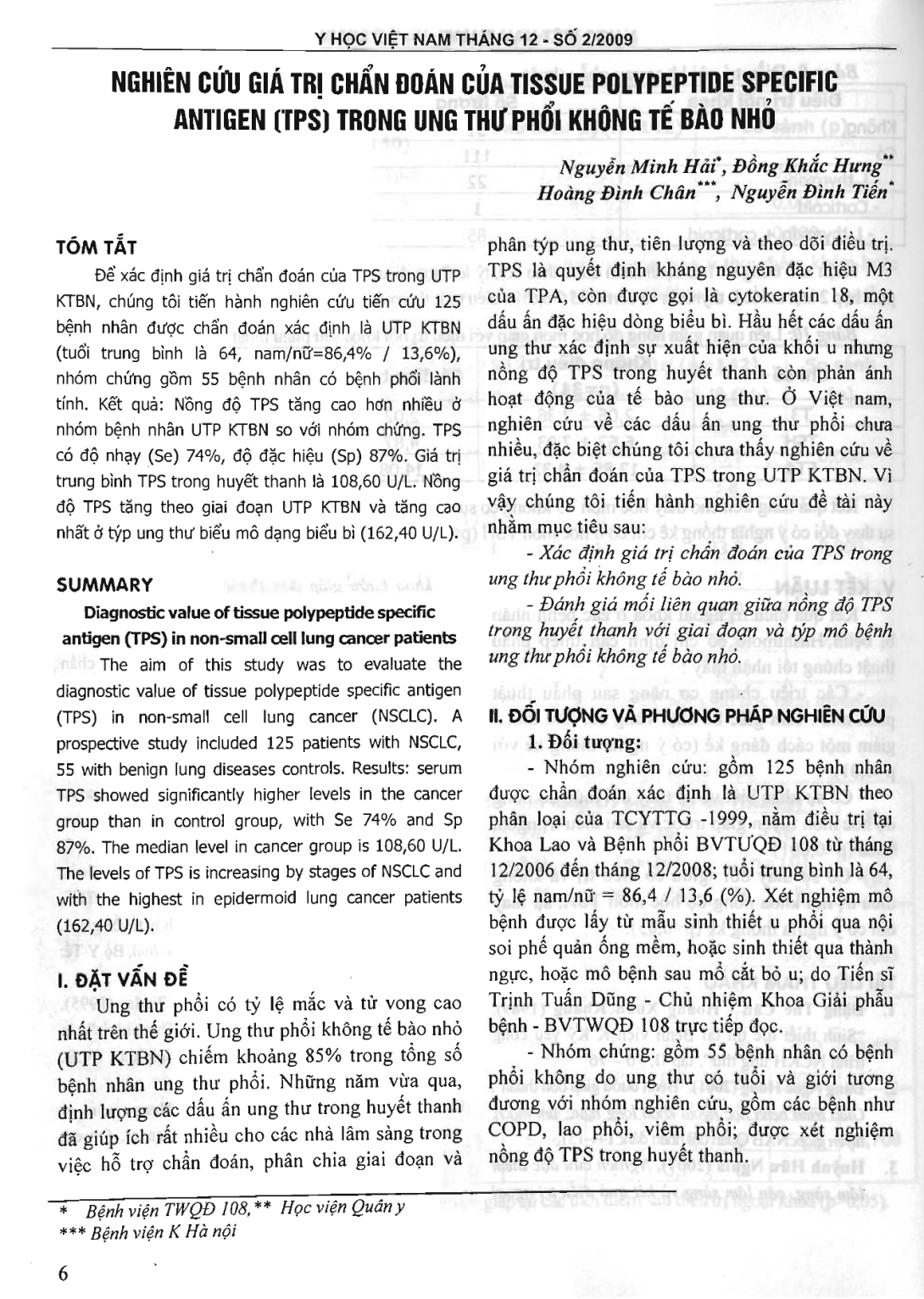 Nghiên cứu giá trị chẩn đoán của Tissue Polypeptide Specific Antigen (TPS) trong ung thư phổi không tế bào nhỏ
