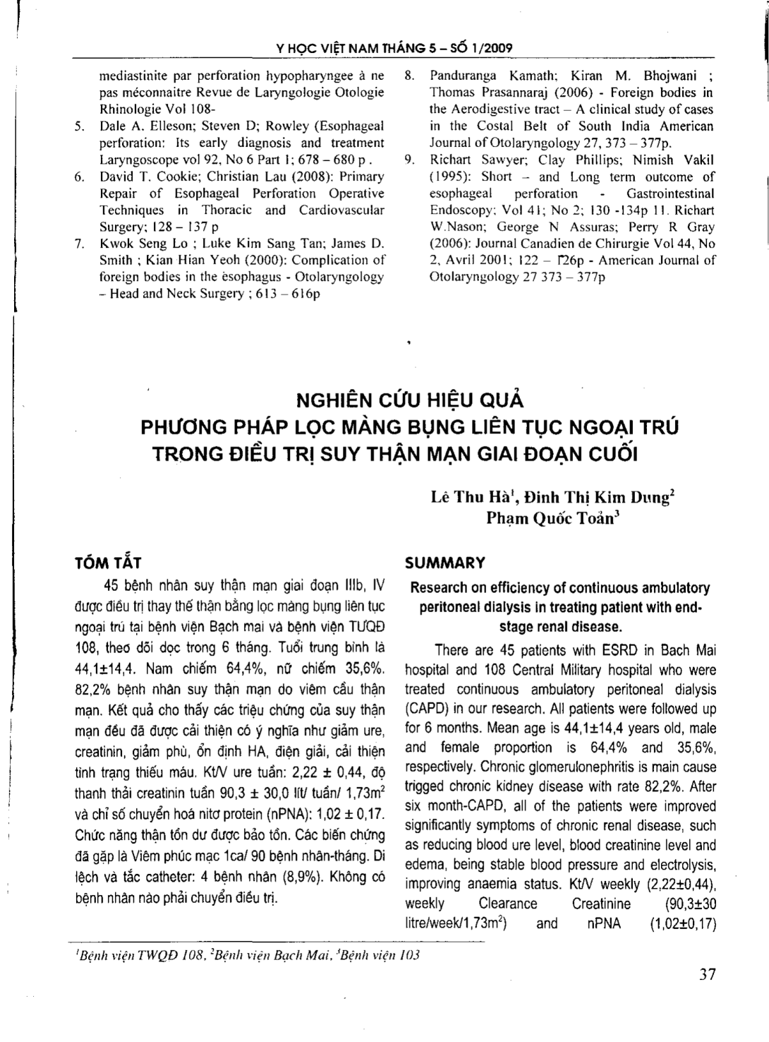 Nghiên cứu hiệu quả phương pháp lọc màng bụng liên tục ngoại trú trong điều trị suy thận mạn giai đoạn cuối