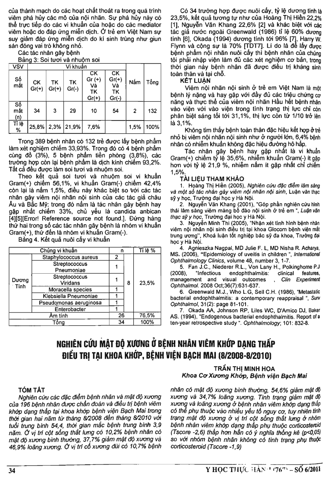 Nghiên cứu mật độ xương ở bệnh nhân viêm khớp dạng thấp điều trị tại khoa khớp, bệnh viện Bạch Mai (8/2008-8/2010)