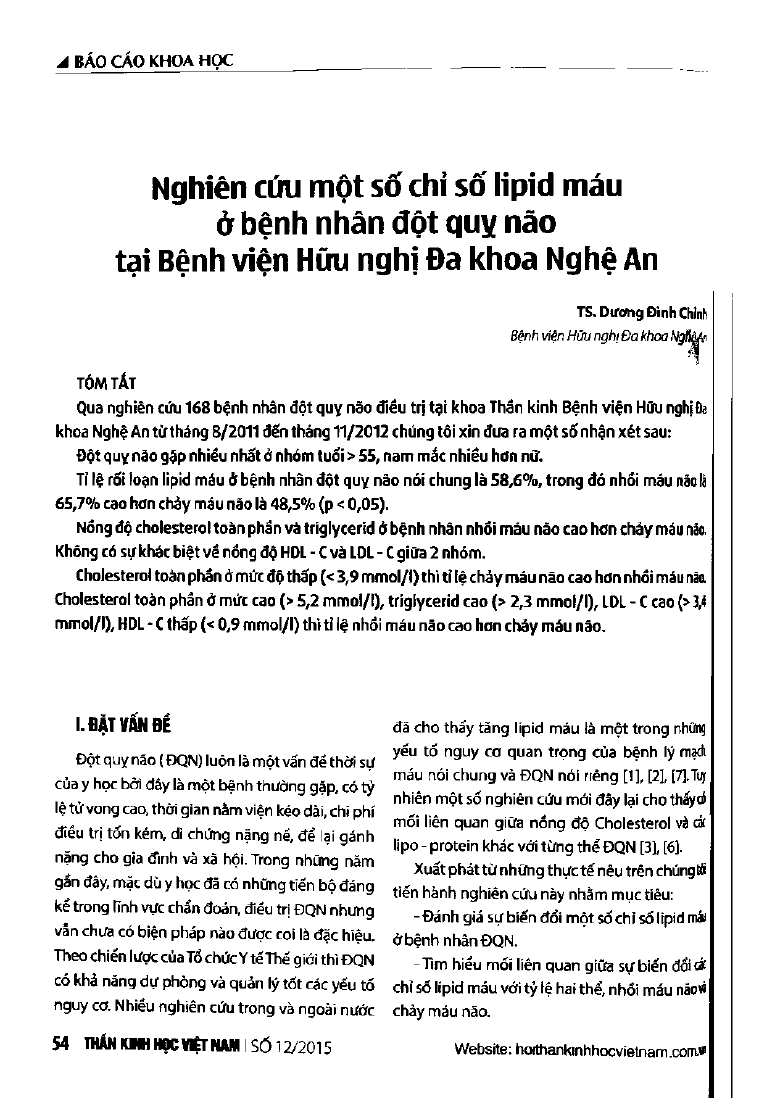 Nghiên cứu một số chỉ số lipid máu ở bệnh nhân đột quỵ não tại Bệnh viện Hữu nghị Đa khoa Nghệ An