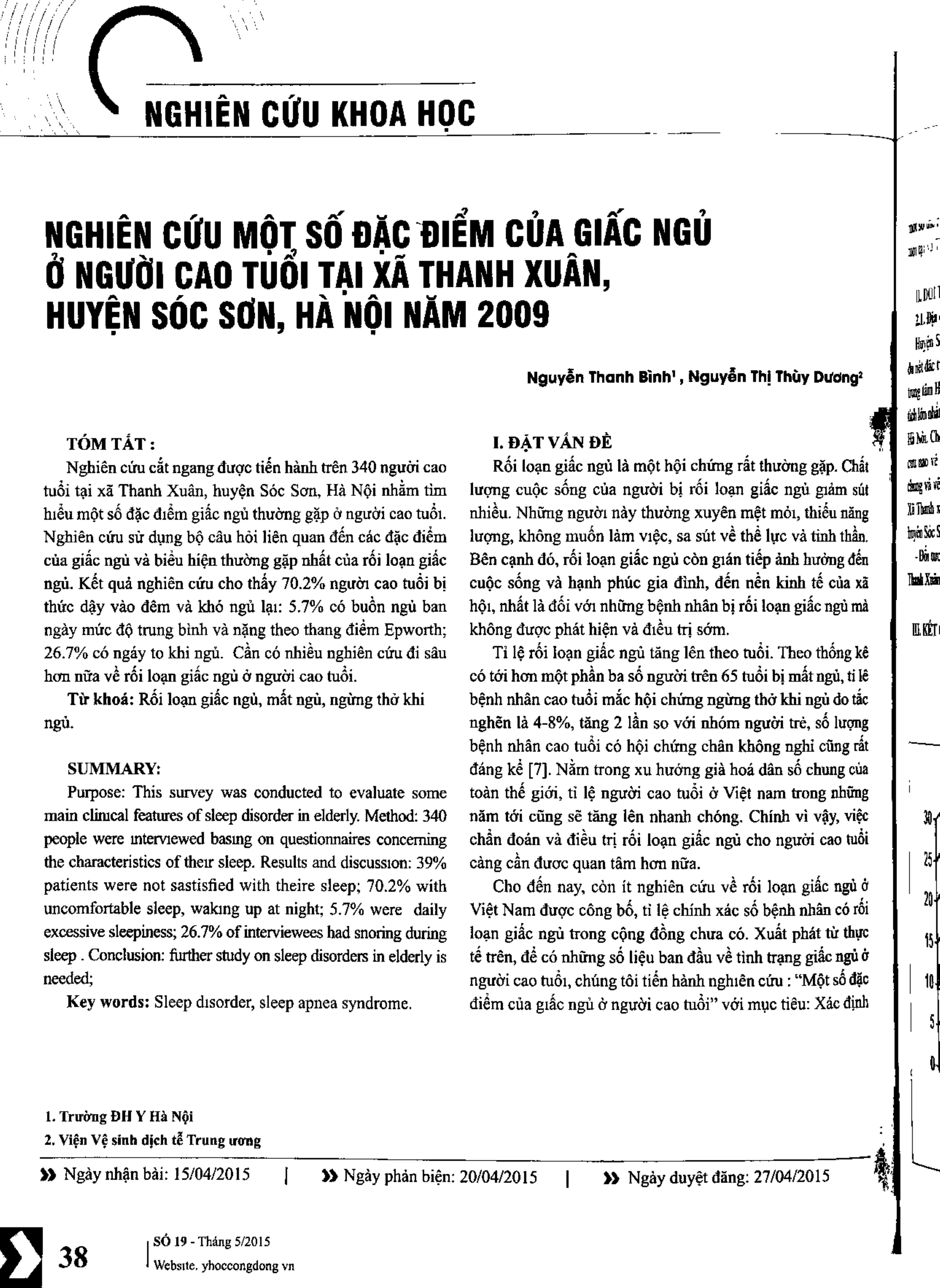 Nghiên cứu một số đặc điểm của giấc ngủ ở người cao tuổi tại xã Thanh Xuân, huyện Sóc sơn, Hà Nội năm 2009