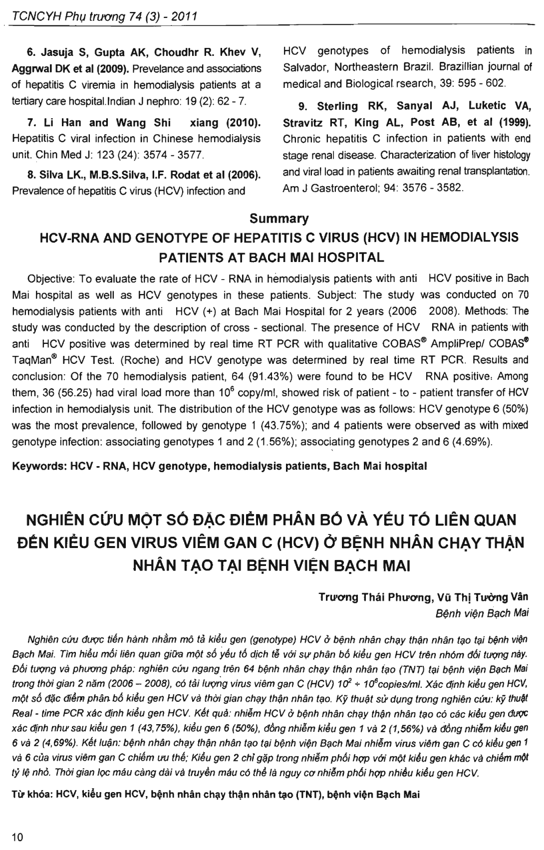Nghiên cứu một số đặc điểm phân bố và một số yếu tố liên quan đến kiểu gen virus viêm gan C (HCV) ở bệnh nhân chạy thận nhân tạo tại bệnh viện Bạch Mai