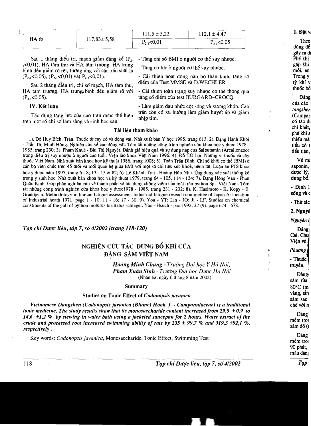 Nghiên cứu tác dụng bổ khí của đẳng sâm Việt Nam