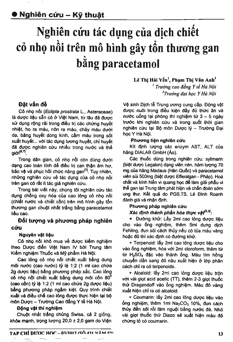 Nghiên cứu tác dụng của dịch chiết cỏ nhọ nồi trên mô hình gây tổn thương gan bằng paracetamol