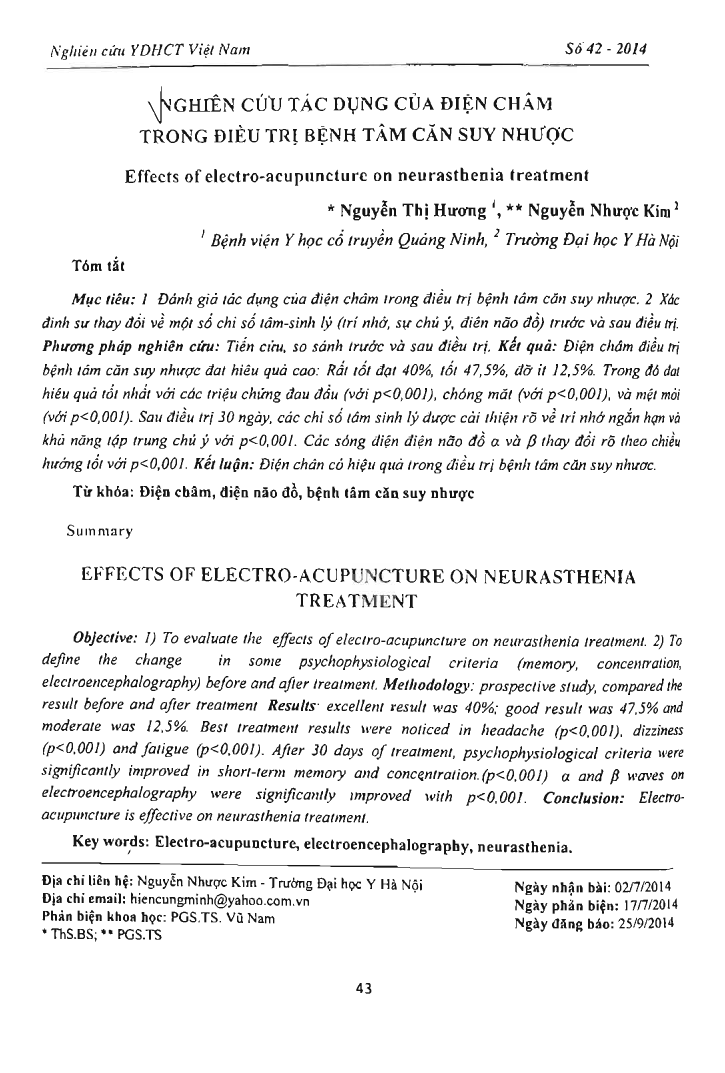 Nghiên cứu tác dụng của điện châm trong điều trị bệnh tâm căn suy nhược