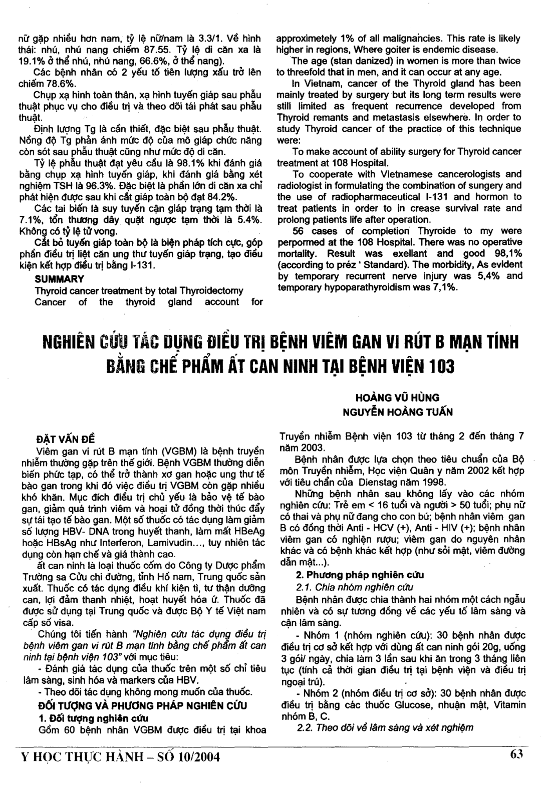 Nghiên cứu tác dụng điều trị bệnh viêm gan virut B mạn tính bằng chế phẩm ất can ninh tại bệnh viện 103