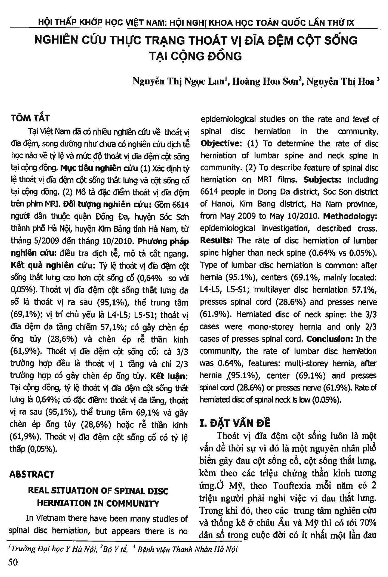 Nghiên cứu thực trạng thoát vị đĩa đệm cột sống tại cộng đồng
