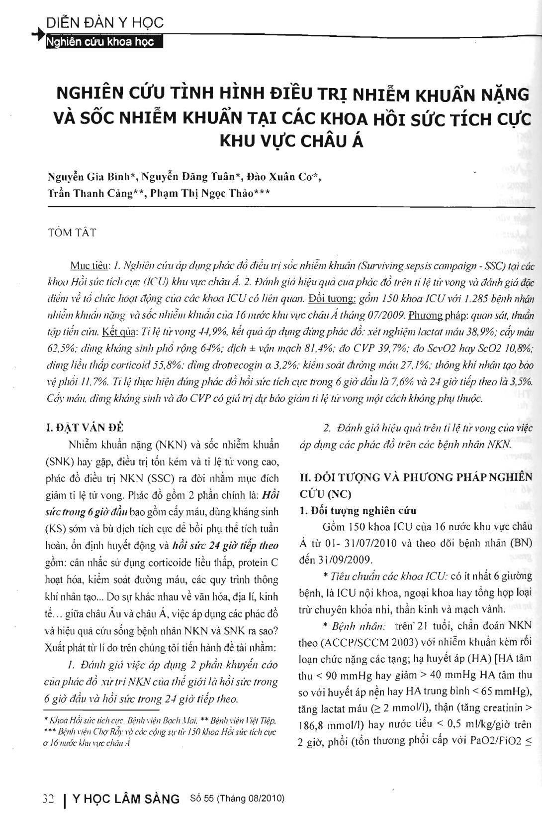 Nghiên cứu tình hình điều trị nhiễm khuẩn nặng sốc nhiễm khuẩn tại các khoa hồi sức tích cực khu vực châu á