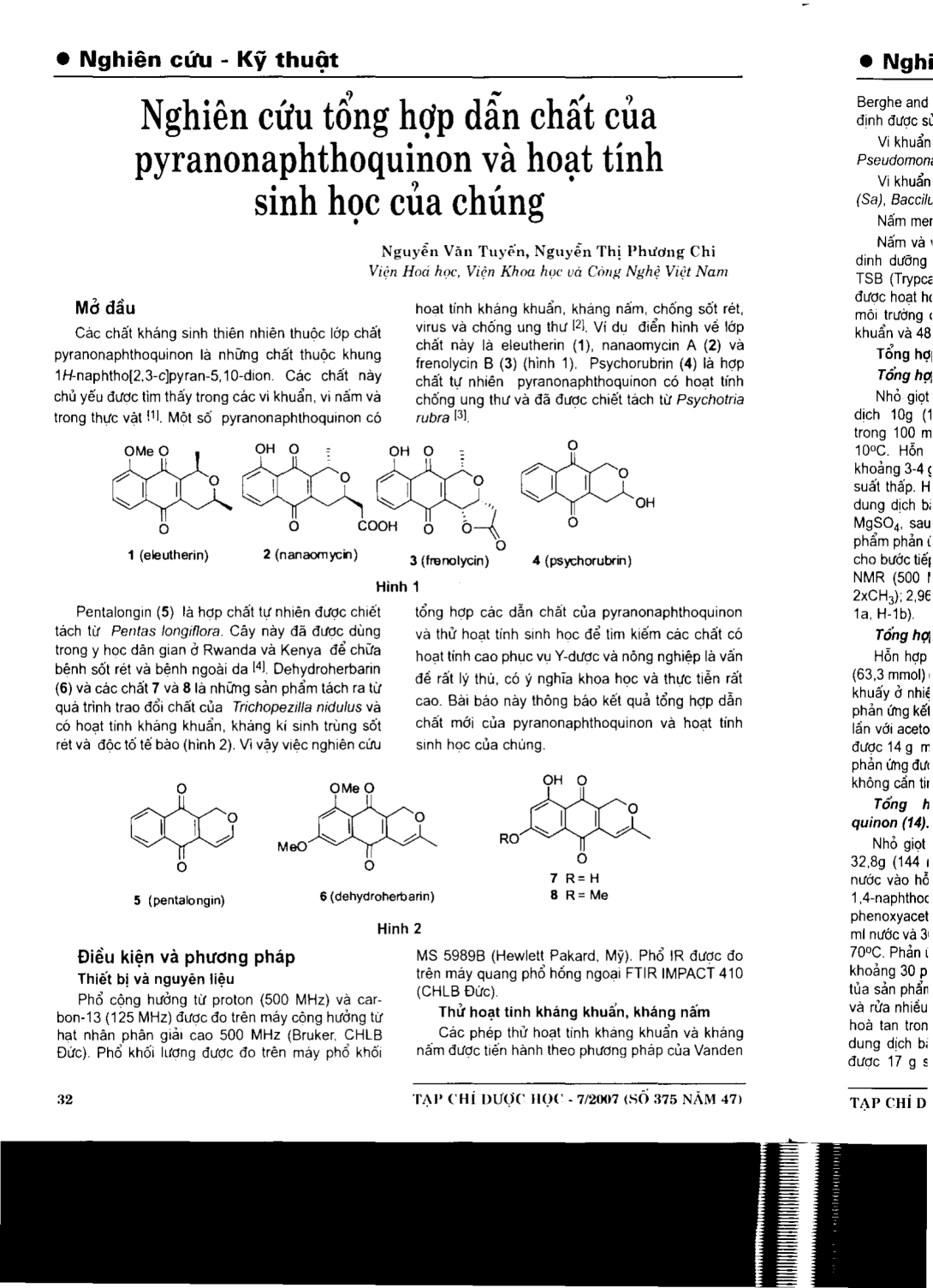 Nghiên cứu tổng hợp dẫn chất của pyranonaphthoquinon và hoạt tính sinh học của chúng