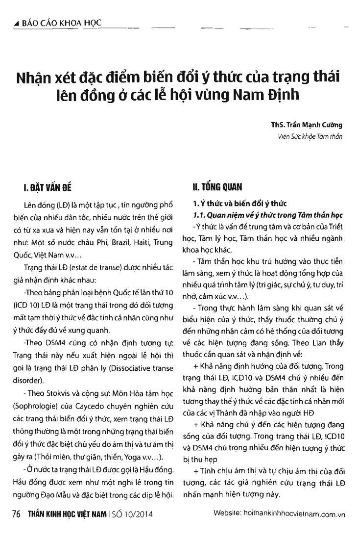 Nhận xét đặc điểm biến đổi ý thức của trạng thái lên đồng ở các lễ hội vùng Nam Định