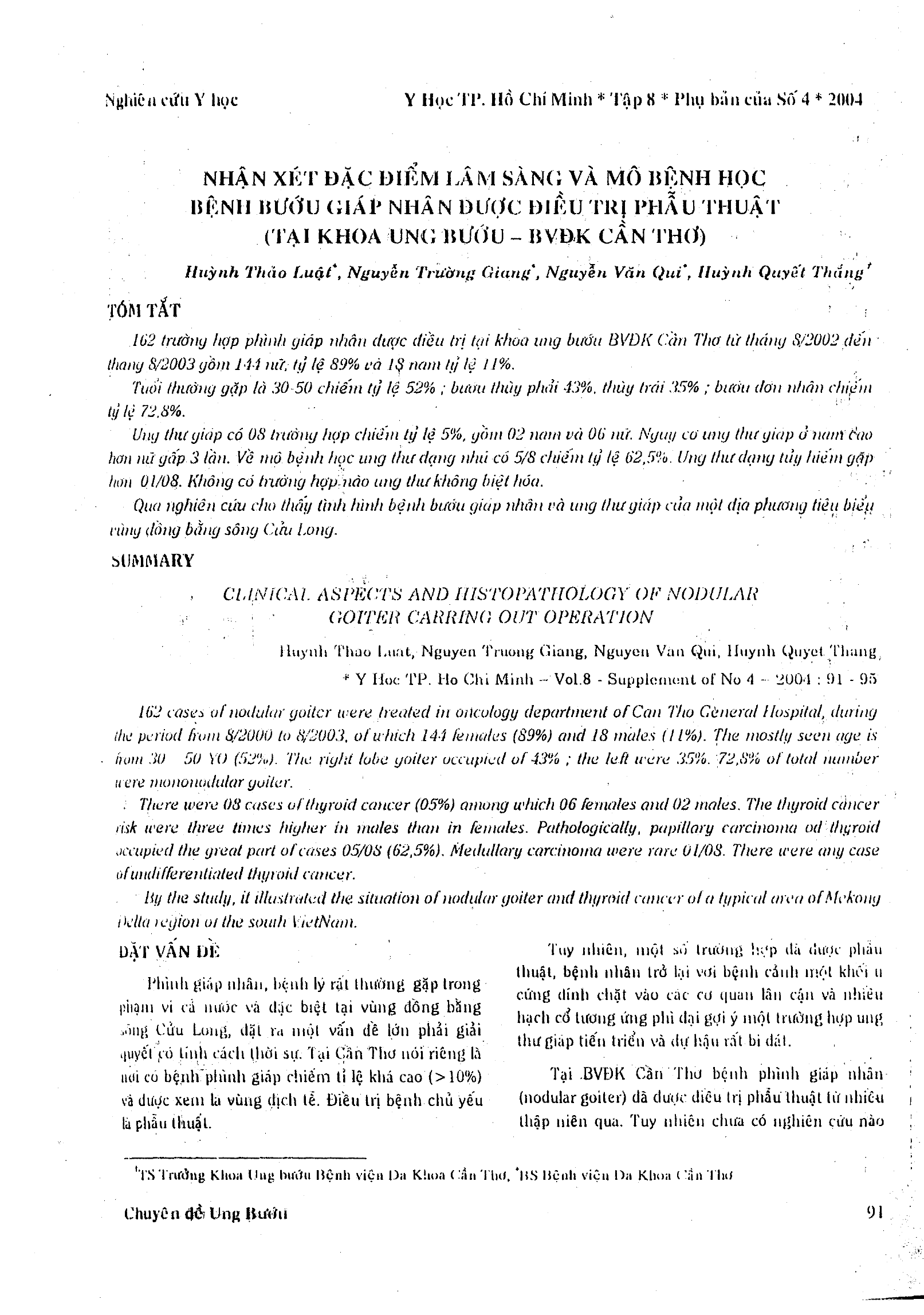 Nhận xét đặc điểm lâm sàng và mô bệnh học bệnh bướu giáp nhân được điều trị phẫu thuật (tại Khoa Ung Bướu - Bệnh viện Đa khoa Cần Thơ)