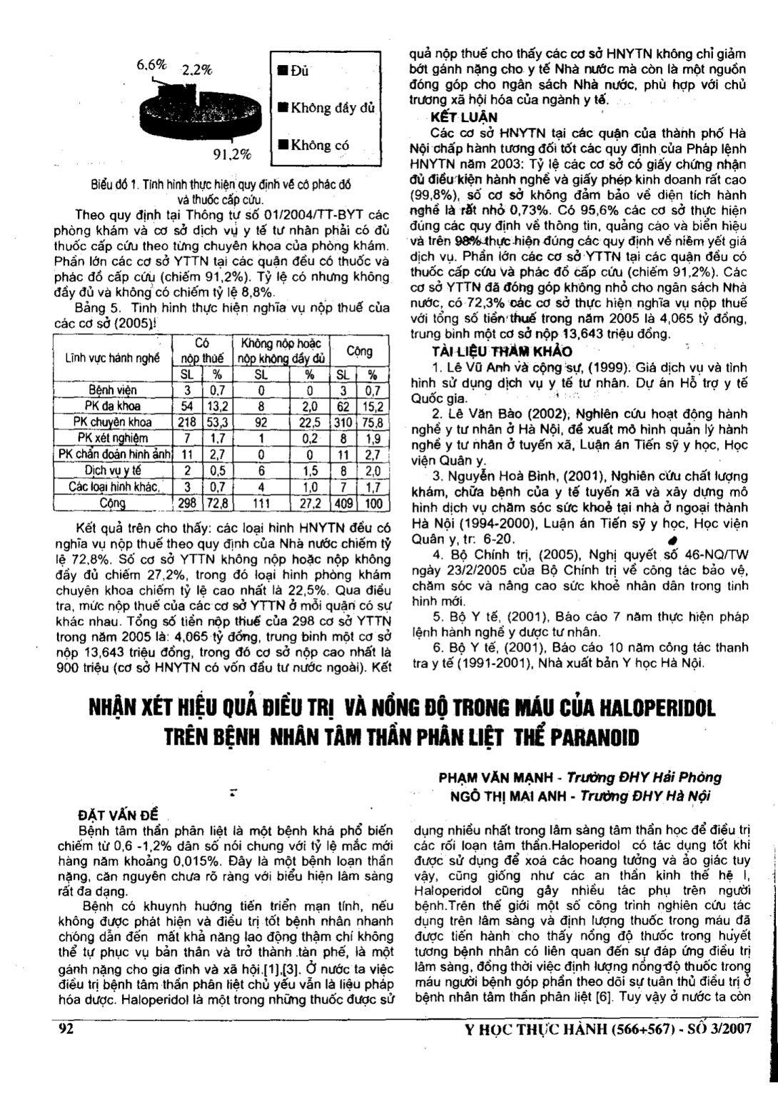 Nhận xét hiệu quả điều trị và nồng độ trong máu cua Haloperidol trên bệnh nhân tâm thần phân liệt thể Paranoid