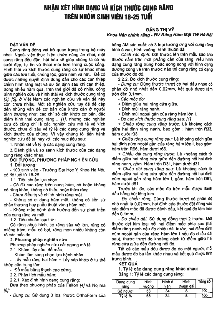 Nhận xét hình dạng và kích thước cung răng trên nhóm sinh viên 18-25 tuổi