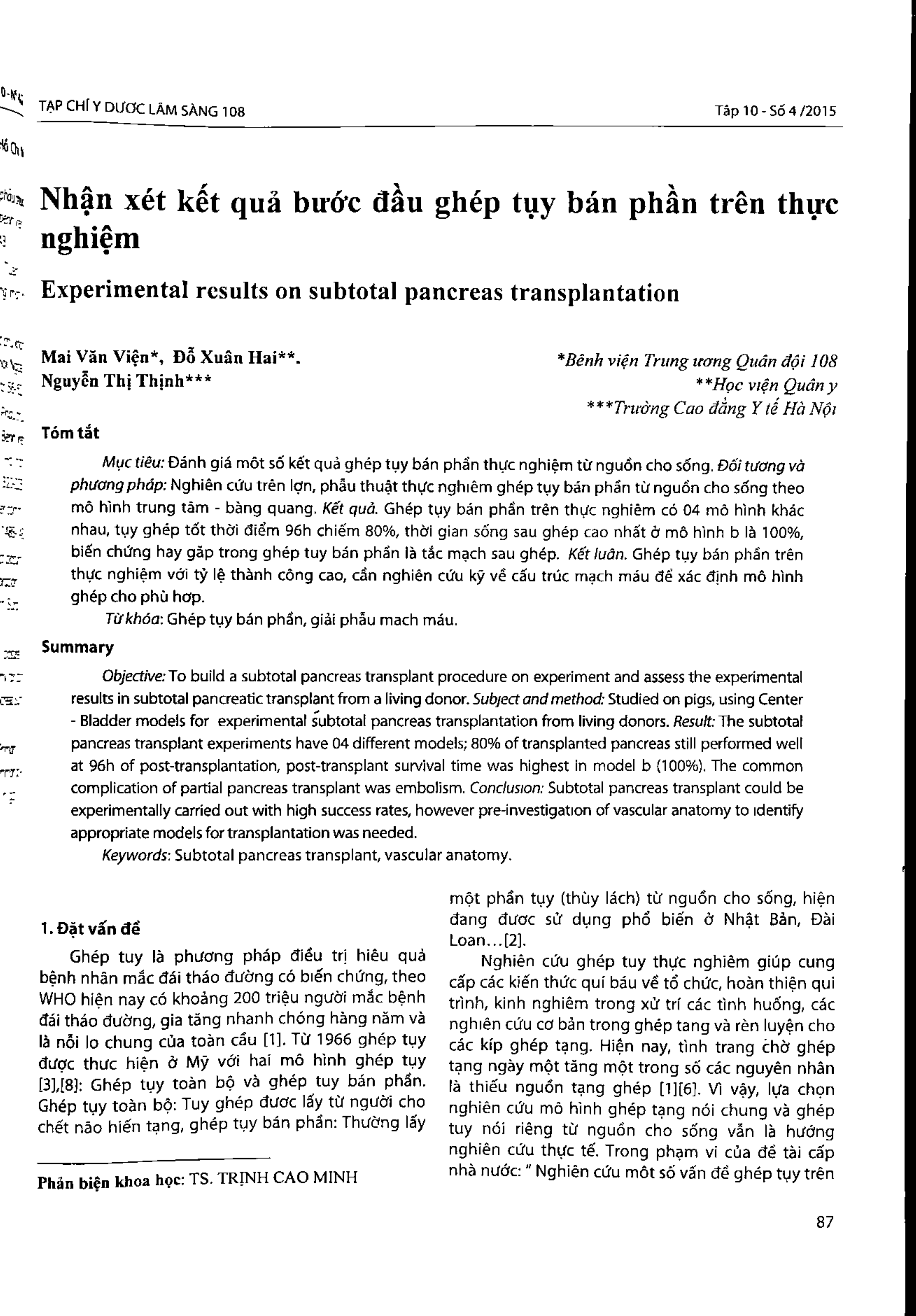 Nhận xét kết quả bước đầu ghép tụy bán phần trên thực nghiệm