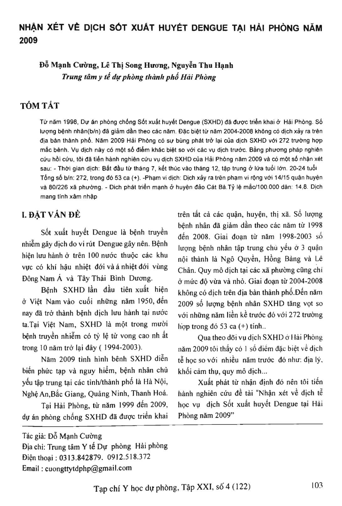 Nhận xét về dịch sốt xuất huyết Dengue tại Hải Phòng năm 2009