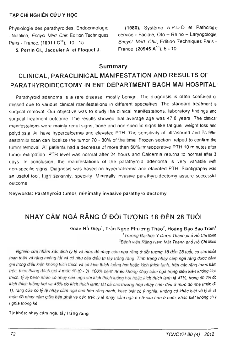 Nhạy cảm ngà răng ở đối tượng 18 đến 28 tuổi