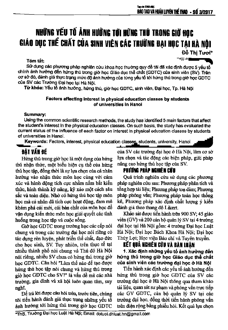 Những yếu tố ảnh hưởng tới hứng thú trong giờ học giáo dục thể chất của sinh viên các trường đại học tại Hà Nội